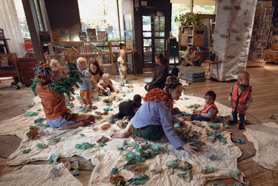 The performance is a site-specific and multisensory dance performance for the library space and the youngest children, and unfolds as a visual, tactile and auditory play with the paper material. In addition, the performance has a theme that is aimed at the children's adult companions: Will the forest one day in the future be something we can only visit in fairy tales and storybooks?